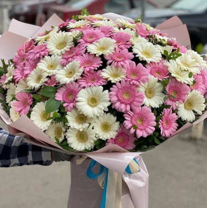 Букет из 101 белой и розовой герберой | Купить в Баку