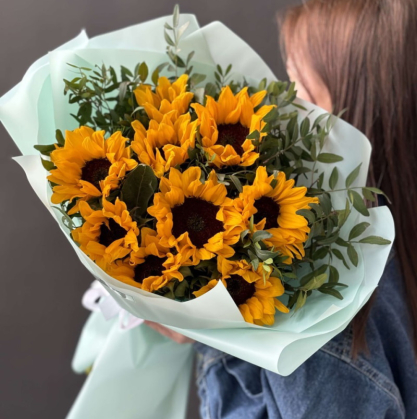Букет из 9 подсолнухов "Счастливый"